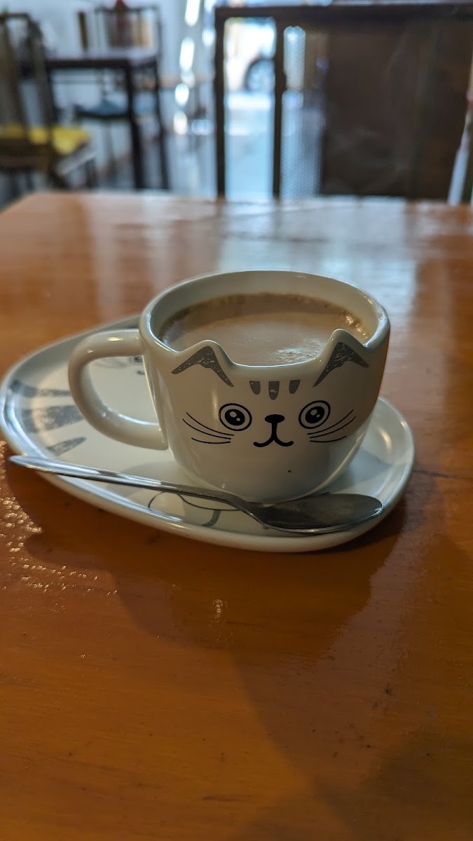 One of the charming elements that adds to the café's allure is its feline companions, with cats casually roaming around, embodying an atmosphere of relaxed comfort. This unique touch makes it a perfect spot to unwind with a good book or simply enjoy the company of fellow cat lovers.